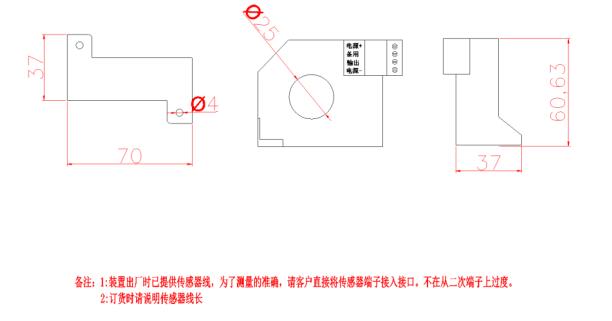4、訂貨時主機(jī)默認(rèn)配一個微電流互感器。最多配備三個微電流傳感器,訂貨期需說明。